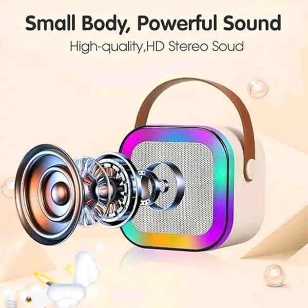 Mini Bluetooth Speaker with Wireless Mic, RGB Light, Type C Charging